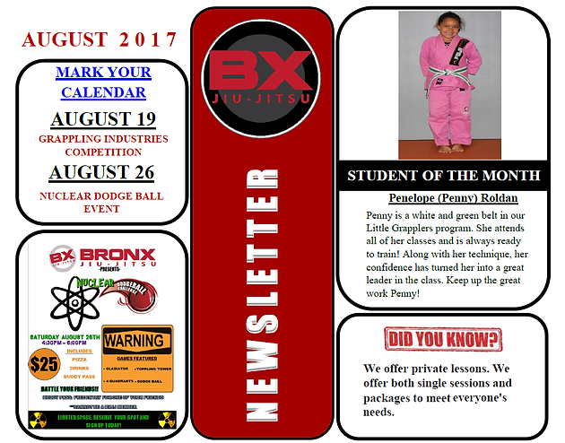 As you all know, the beginning of the month is already upon us. Here is what's going on with the Kids' BJJ program this month.